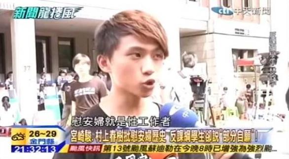 之後,“反課綱”學生發言人王品臻和林致宇,一個擔心慰安婦議題“得罪日本怎麼辦?”