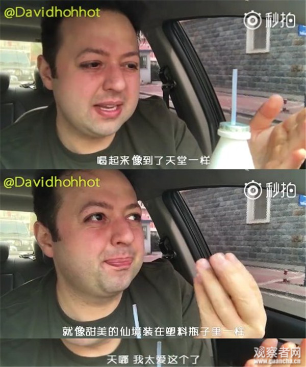 最近,認證為“新大陸語言學校校長”的微博網友@DavidHohhot 上傳了一段自己錄製的視頻,極盡溢美之詞誇讚了一種中國特有的神秘飲料。