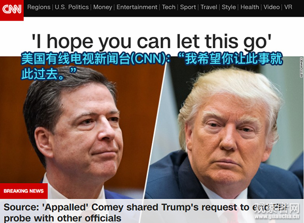 美媒稱特朗普曾施壓科米中止“通俄”調查 白宮否認
