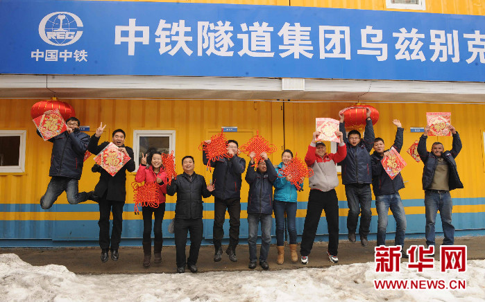 截至目前,中國對烏茲別克斯坦直接投資和貸款共52億美元,合作實施項目70個。圖為中鐵隧道集團烏茲別克斯坦安革連至琶布鐵路隧道項目海外職工。
