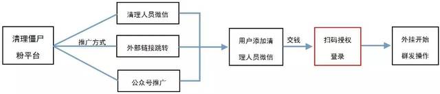他們先通過添加清理人員微信、外部鏈接跳轉、公眾號推廣這三種方式宣傳,引誘用户使用。