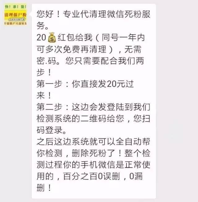 清理殭屍粉工具,本質是一些外掛團伙,開發的一種外掛軟件功能,以達到清理微信殭屍粉的效果。