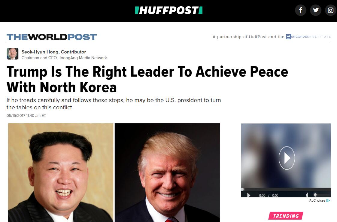 韓國新總統文在寅上週上任,15日,文在寅向中美俄日四國派出特使,派往美國的特使為前《中央日報》社長、電視台JTBC會長洪錫炫。