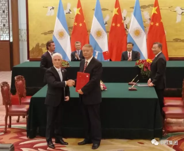 據中核集團官方微信號5月17日報道,當天,在中國國家主席習近平與阿根廷總統馬克裏共同見證下,中核集團董事長王壽君與阿根廷核電公司總裁塞莫羅尼在北京人民大會堂簽署了關於阿根廷第四座和第五座核電站的總合同。