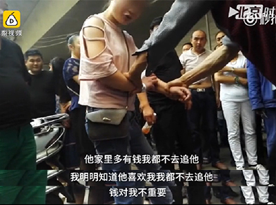 女子在踢打父母時,口中唸唸有詞的説,之前有一位有錢男子喜歡她,但她都不為所動,因為對她來説錢不重要。