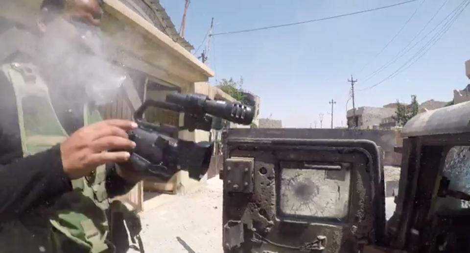 據外媒報道,在伊拉克的摩蘇爾前線,英國《太陽報》記者阿馬爾·阿爾韋利( Ammar Alwaely)距離死神曾經只有幾英寸的距離。