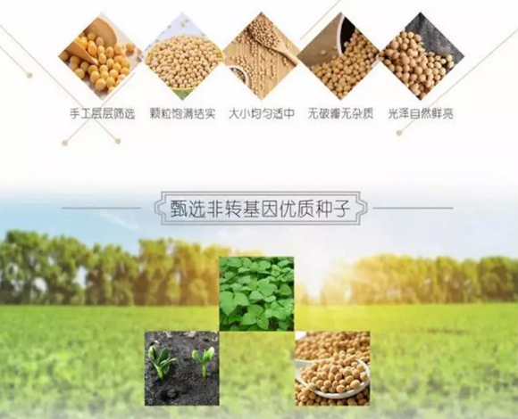 再看這個大豆,也比一般非轉基因大豆貴了至少一倍,其宣傳點是生態的環境,傳統的耕作方式,最重要的是,使用的非轉基因種子。
