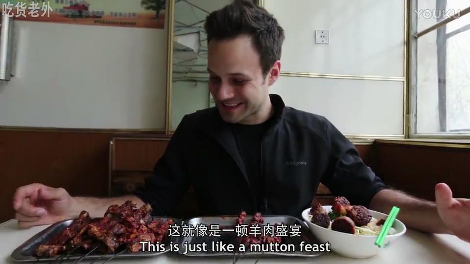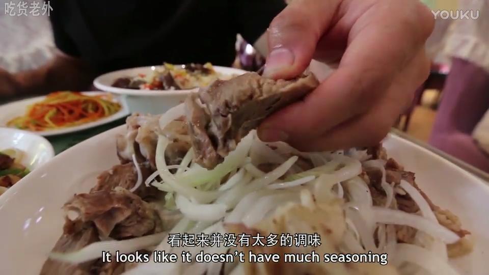 吃手抓肉時,他説:“這看起來沒怎麼調味啊……”