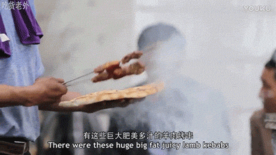因為想要吃到更原汁原味更地道的大餐,他坐車去了鄉下。在那兒,他又發現了新大陸:囊裹羊肉串,用這種方法烤羊肉串,肉會更香,囊也有了肉味兒,一舉兩得。