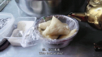 吃完拉麪,他又去小巷子裏逛,所以又看到了不得不吃的美食,想不到粽子也可以這麼美麗呢。