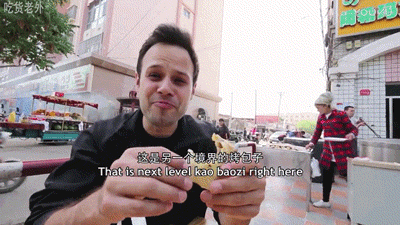 在第二天的覓食中,他吃到了另一樣特色——烤包子。