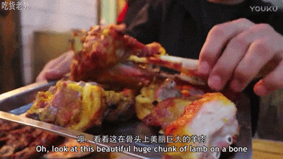 下面就是當天他費了老大勁兒才等來的美食:烤羊腿和羊排。看着就香得不得了呢。