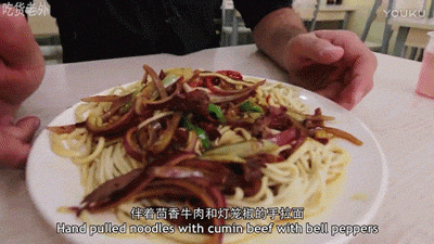 午飯他吃的仍然是麪食:一家維吾爾族拌麪。對,就是這麼愛吃麪。