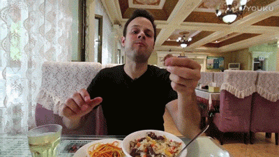 再比如,他沒搶上烤羊排和羊腿時,真的是有些捉急呢: