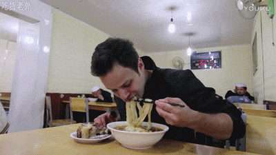 拉麪對他而言可謂真愛,他説:“當你走進店裏,可以看到人們都在開心地吃麪條,可以聽到師傅把麪條甩在案板上“啪”地一聲,可以看到師傅邊抻面邊把麪條扔進鍋裏,每一碗拉麪都是如此神奇,每一碗拉麪都擁有自己的靈魂。”