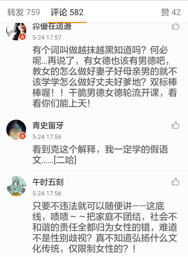 中國婦女報微博:九江市傳統文化研究會稱女德講座“克”是“影響”的意思