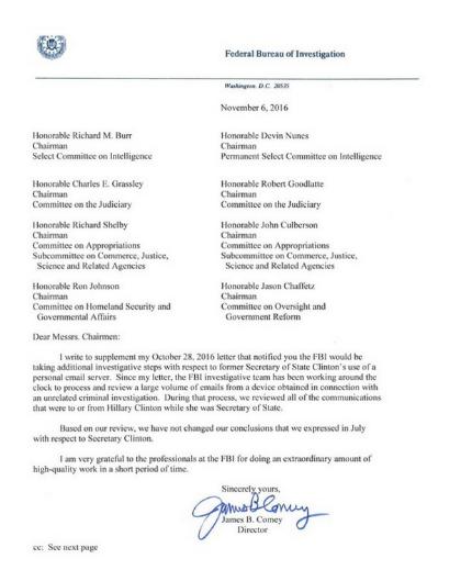 早在競選前,FBI對希拉里“郵件門”調查一直持續到2016年的7月份,此時兩黨預選結果已定,接下來就是大選,科米宣佈調查未發現有證據顯示違法,因此建議不予起訴。然而到了10月底,詭異的一幕出現了,科米對國會發出恢復調查希拉里“郵件門”的通知,此時距離大選僅11天,彼時在媒體引發了軒然大波,並引發了民主黨的嚴重不滿。如果説科米是受到來自於部門內部共和黨力量的壓力,那麼他違反正常程序,在沒有通知司法部長的情況下獨立發出重啓調查的通知,只能讓人感到一頭霧水。就在大家還沒從懵的狀態中回過神來的時候,一週後,科米便致函國會,聲稱經過調查,維持認為希拉里不應面對刑事指控的決定。