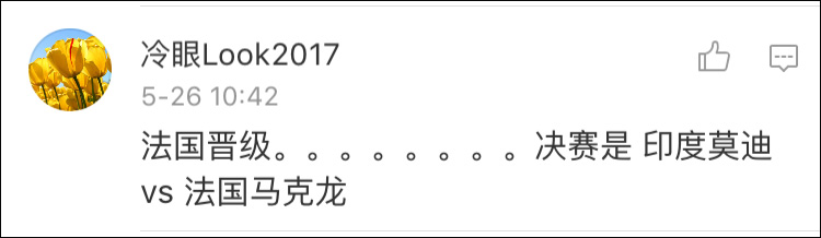 網友表示這輪法國晉級,決賽要和莫迪比……