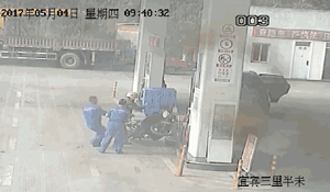四川:男子加油站點火後跳入火堆 工作人員臨危果斷處置