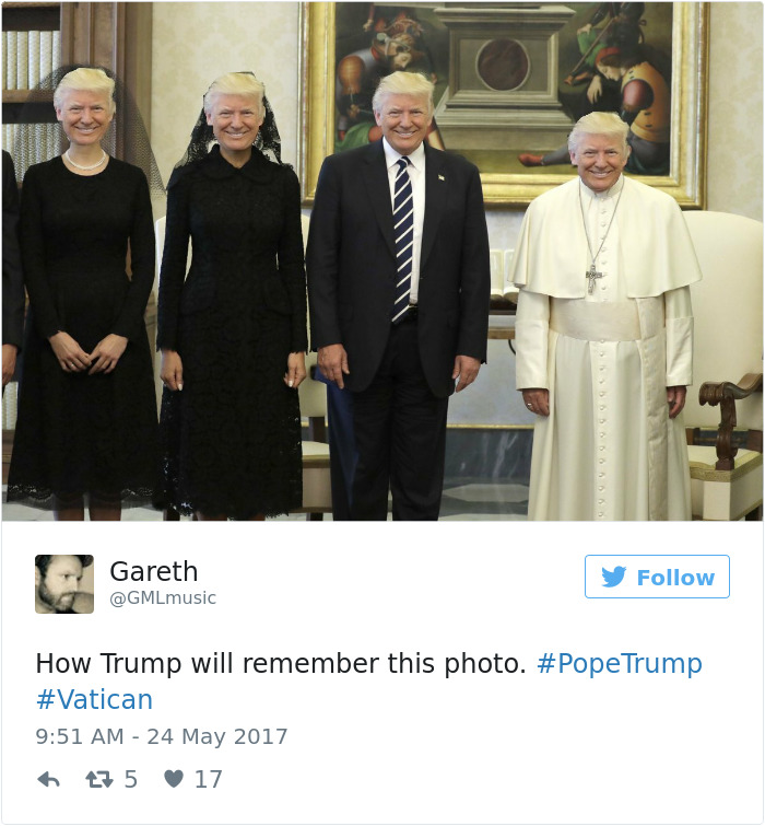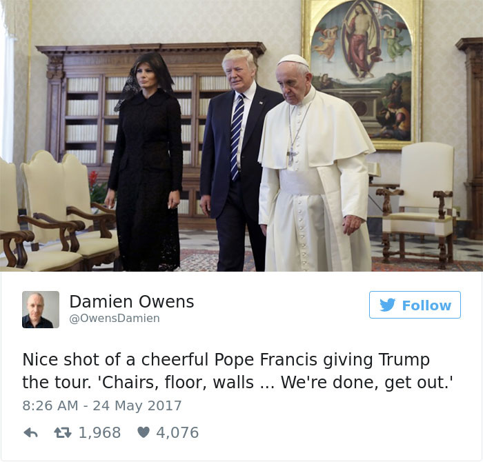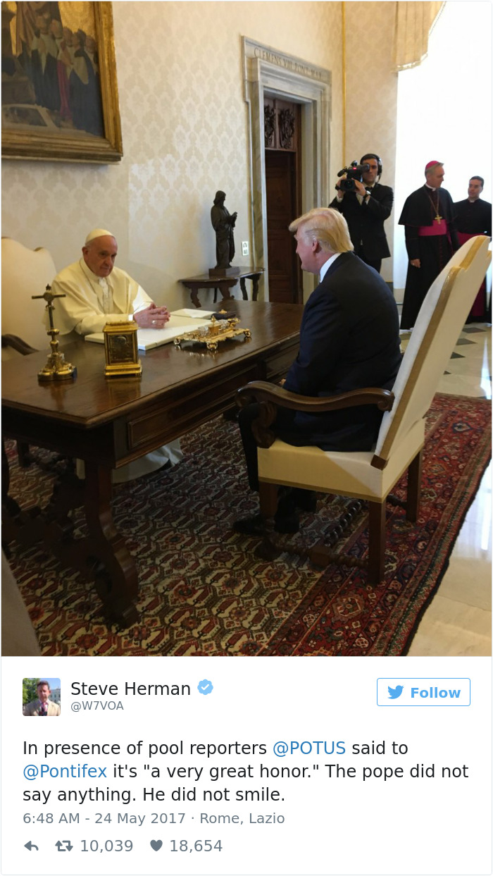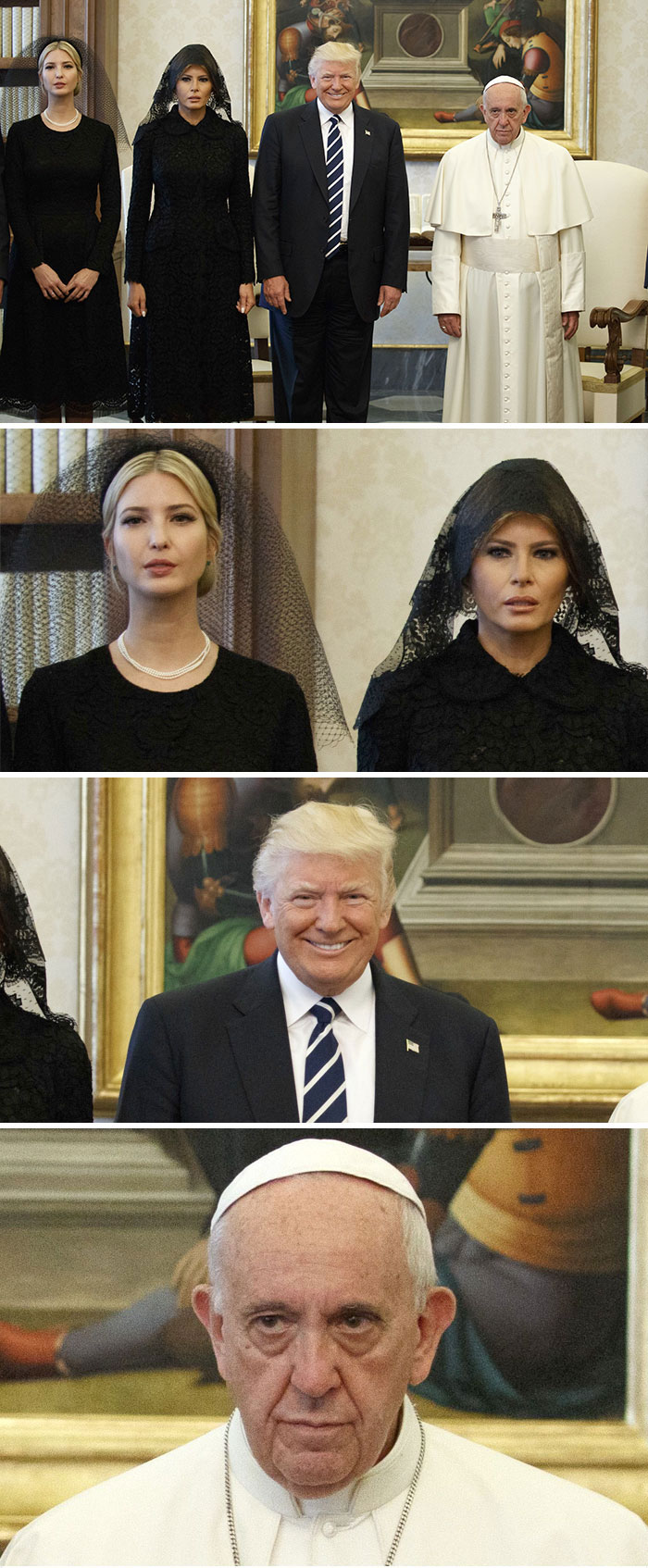 特朗普訪問梵蒂岡和方濟各合影 愛笑的教皇卻全程黑臉