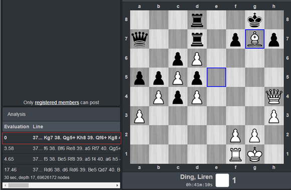 以王翼印度防守開局的Stockfish,在殘局中形成了雙馬對象車高兵的不利局面,最終敗北,圖片來源:chessbomb截圖
