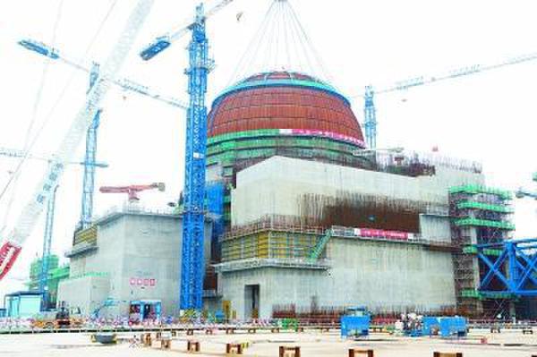5月25日,完成穹頂吊裝的福清核電5號機組。(圖片來源 澎湃新聞)