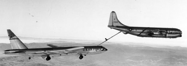 冷戰高峯時代,美蘇都奉行大規模核報復理念,在洲際導彈出現之前,高亞音速高空突防、洲際航程的B-52這樣的核轟炸機就是核攻擊的主力。為了在核大戰前夜保持24小時戒備,B-52需要超長的留空時間,單純靠起飛時多帶燃油已經不行了,只有空中加油。空中加油還可以增加航程,不僅使轟炸機增加作戰半徑,還可以減油滿載起飛,在確保最大載彈量的同時,不影響作戰半徑,畢竟燃油是可以在空中添加的,炸彈就沒法在起飛後再補充了。