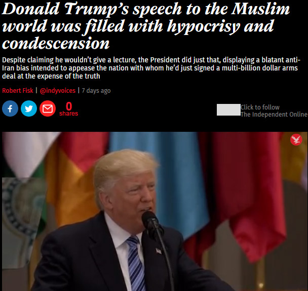 羅伯特·菲斯克:特朗普對穆斯林世界的講話充滿虛偽和高傲