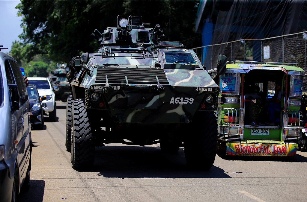 菲政府軍裝甲車進入馬拉維,圖片來源:視覺中國