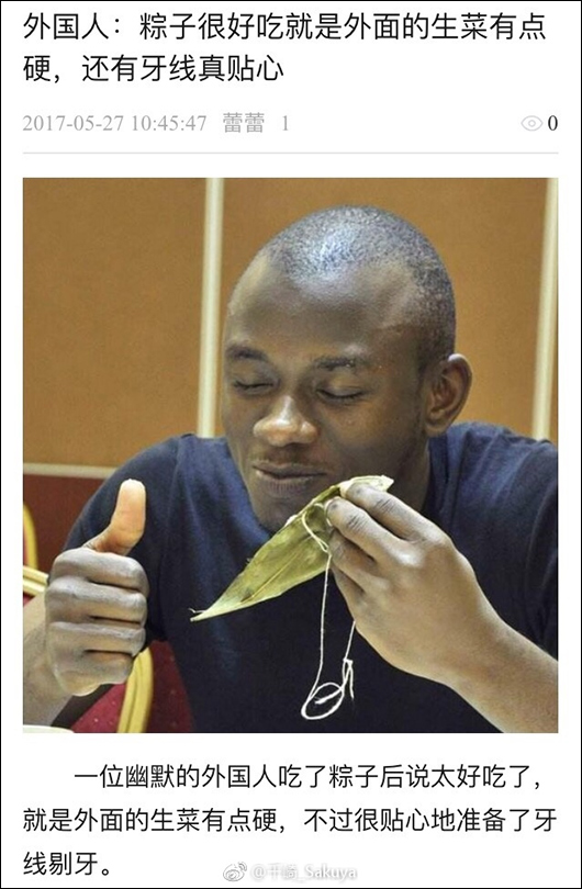 每逢端午,這個關於歪果仁吃粽子的段子就會出現: