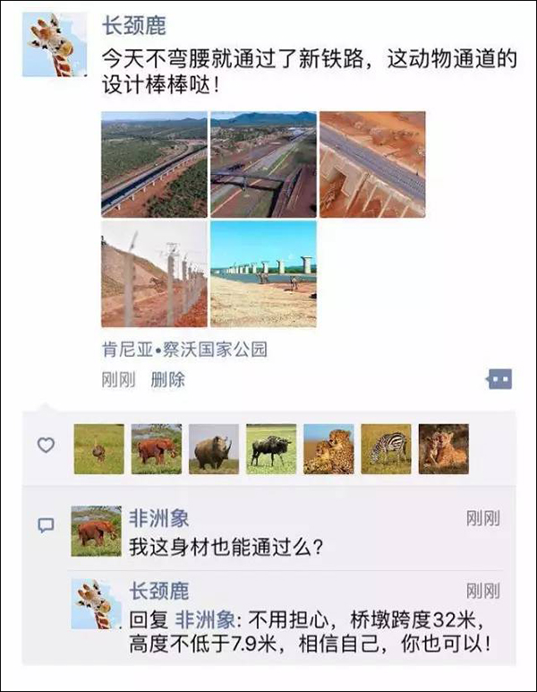 當時鐵路邊的當地工人就表示説,“這是一條綠色之路,野生動物能跟鐵路和平相處。”