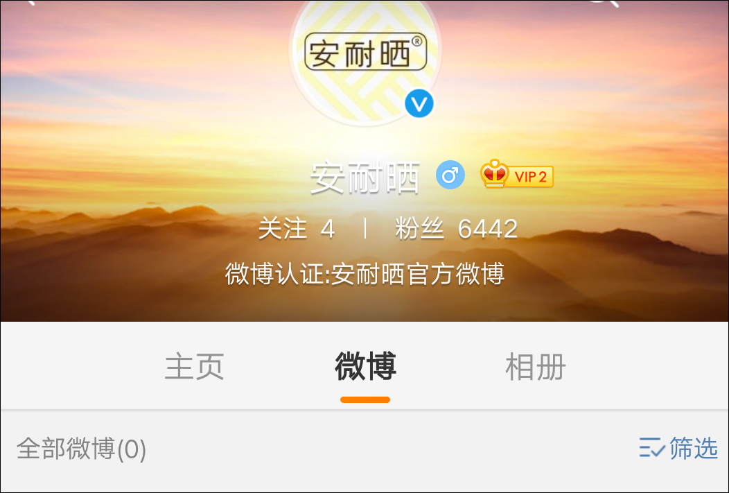 首先,微博搜索“安耐曬”,跳出的第一個就是上文原博的微博,認證是安耐曬官方微博,公司是廣東安耐曬供應鏈有限公司。