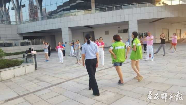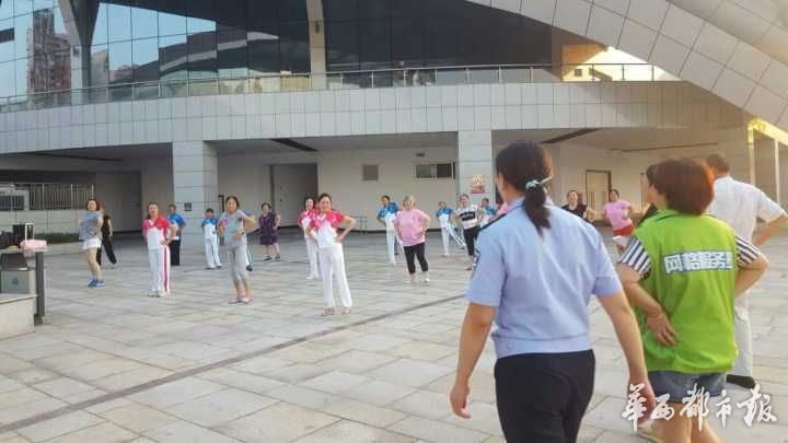 謝長平介紹,廣場周邊有好幾個小區數千户居民,其中肯定有不少考生。我們便上前找到隊伍的負責人,請她們關掉音箱,給考生一個安靜複習的環境。這個負責人倒是比較客氣,表示理解我們的工作,馬上關掉了音箱。