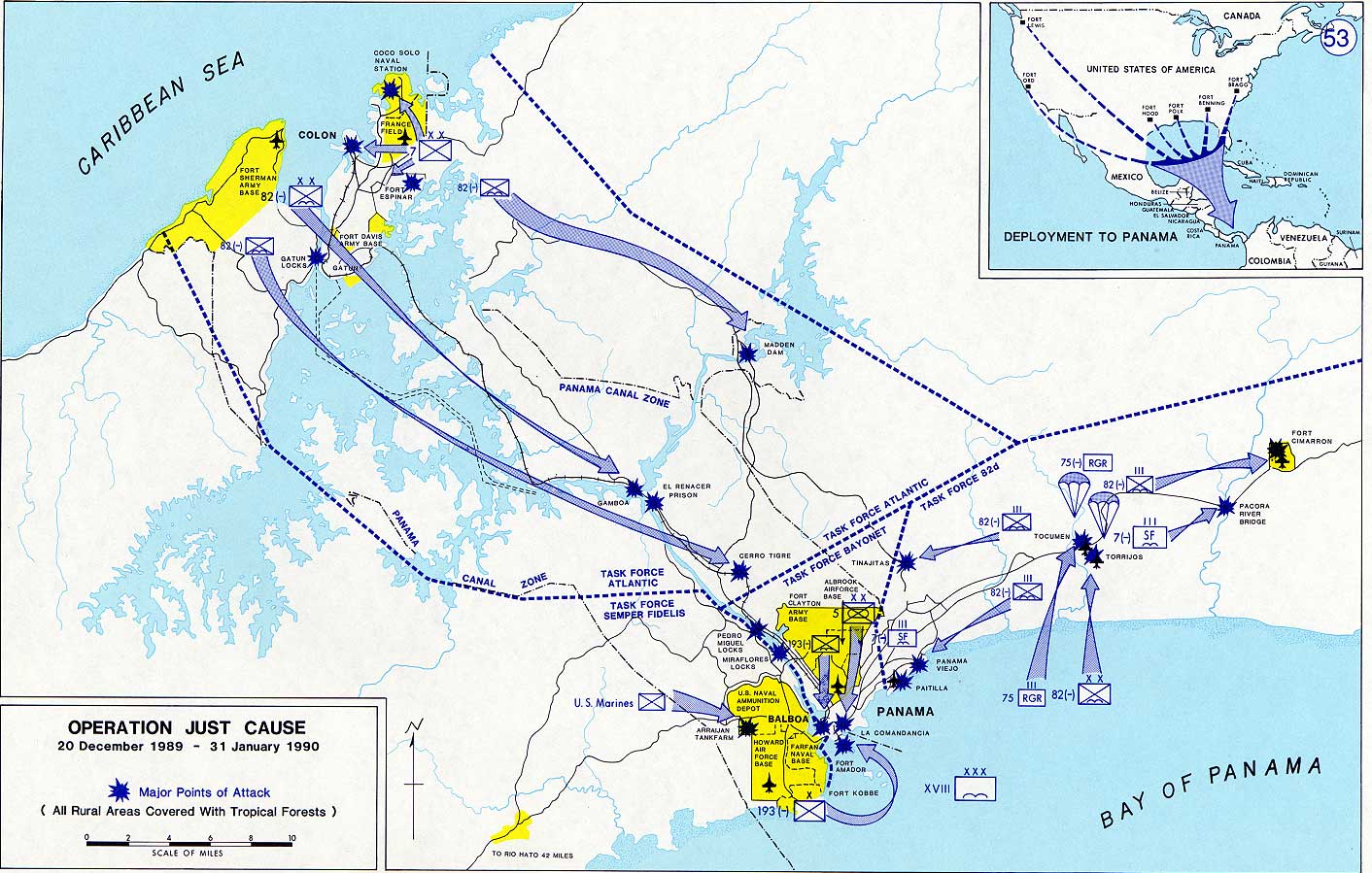 美軍“正義之師作戰”(Operation Just Cause)的軍事行動示意圖