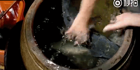 徒手就抓起了一條,濺起的水花濕了圍裙。