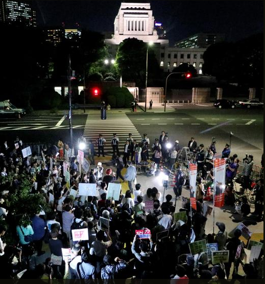5月23日,反對民眾在國會議事堂前聚會抗議。來源:日本朝日新聞中文網
