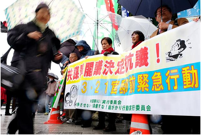 “共謀罪”法案曾在小泉政權時期三度成為廢案,此次修正案將對象重新設定為“恐怖集團及其他有組織的犯罪集團”;內容則調整為符合以下情況即可適用:(1)計劃實行犯罪者達2人以上;(2)其中有人作出“安排資金及物品”、“預先查看相關場所”等“準備行為”。