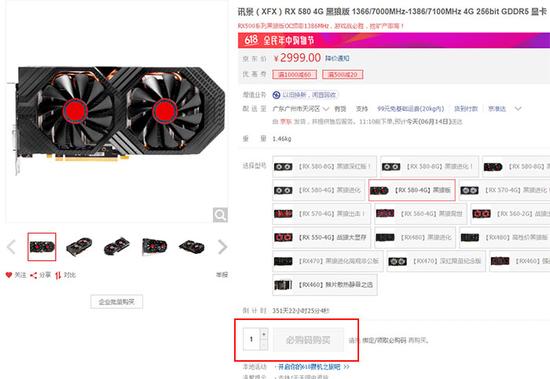 部分品牌的RX 580、RX 570雖然可以通過必購碼買到,但即使有必購碼,賣到2999元的一張RX 580顯卡,顯然對大多數遊戲玩家們都是無法接受的。