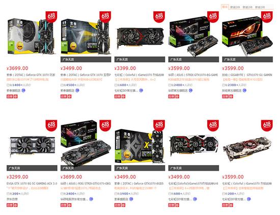 NVIDIA顯卡方面就沒有AMD顯卡那麼火熱,這邊的GTX 1060由於有不錯的挖礦能力,情況與RX 580類似,基本全面無貨,只有七彩虹一張可以必購碼,但價格在2599元。