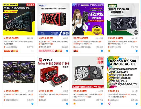 淘寶上RX 580有賣到4599元