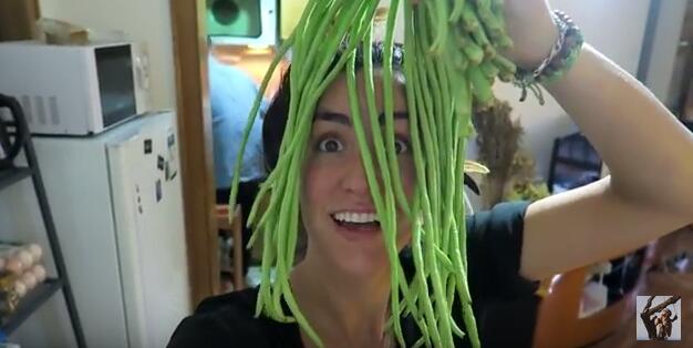 最可愛的是,這個好奇心特別重的妹子不僅發現中國美食好吃,對中國的蔬菜,也產生了特別的興趣……