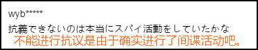 也有日本網友對本國間諜被中方拘留不以為然:“在中國逗留的十幾萬日本人中,有12人被捕。概率是萬分之一。而日本的平均犯罪率是每千人十件,所以單看數據並不可怕。”