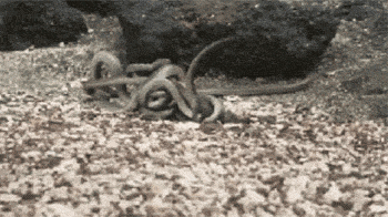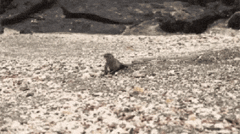 太平洋加拉帕戈斯島上,鬣鱗蜥幼仔在蛇羣的圍追堵截中逃生。