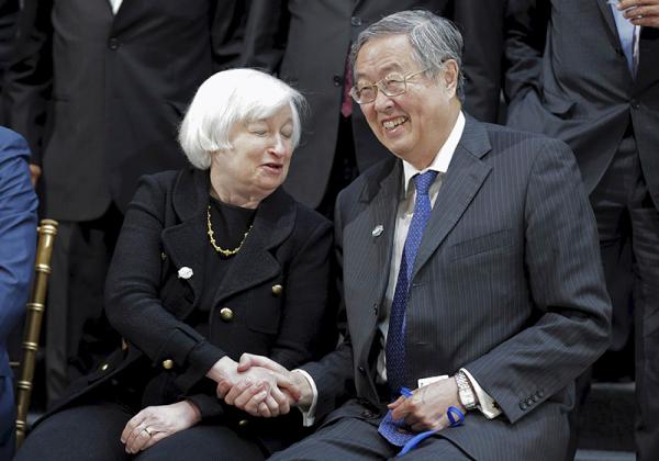 美聯儲主席耶倫和中國央行行長周小川