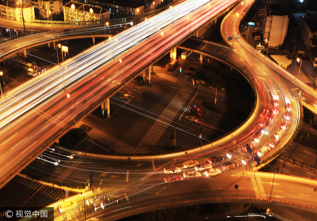 上海晚高峯時的高架立交(圖片來源:視覺中國)