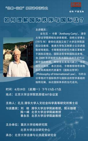 6月19日(週一)下午3:00,安東尼·卡蒂教授在北京大學法學院凱原樓307會議室做了題目為“如何理解國際秩序與國際法”的講座。