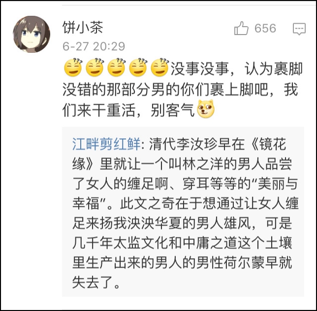 令人頗感意外的是,劉平的“纏足是保護婦女”論,竟還有不少支持。