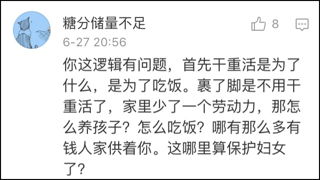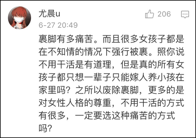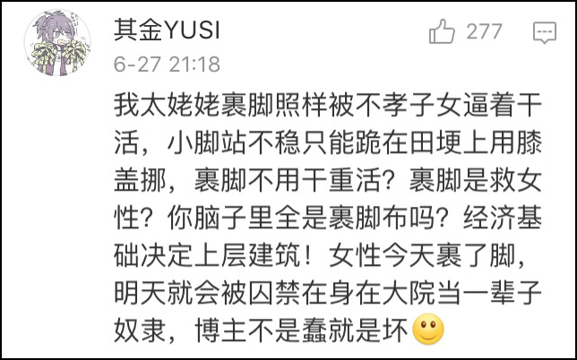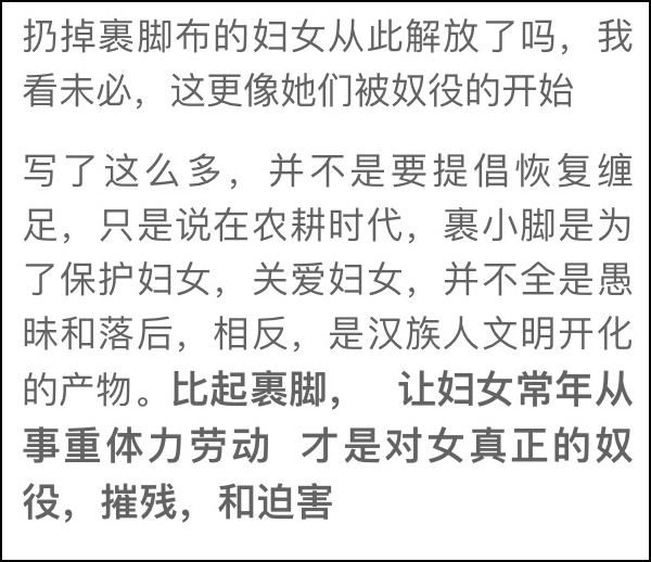 説到底,有網友認為,纏足還是歧視婦女,不給婦女尊嚴: