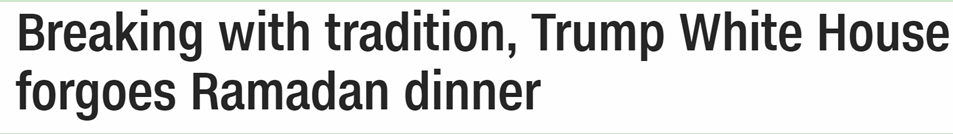 特朗普打破傳統放棄慶祝穆斯林齋月