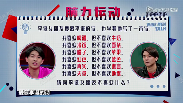 除了這類“利用規律找答案”的題目,還有一種“講故事”的題型,更考驗嘉賓的腦洞。